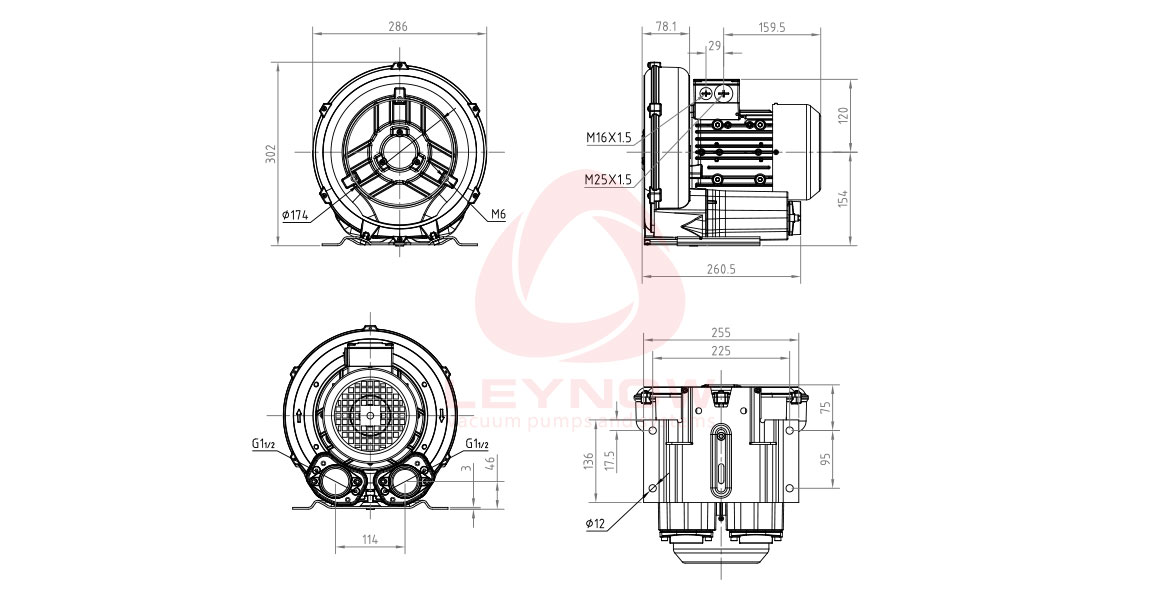 電機功率:12.5 Kw 極限真空:210 mBar 額定電壓:345-415△/600-720Y 額定流量:1370 m3/h