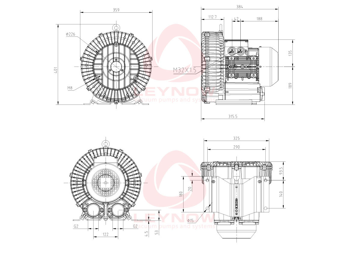 電機功率:1.5 Kw 極限真空:200 mBar 額定電壓:200-240V 額定流量:210 m3/h