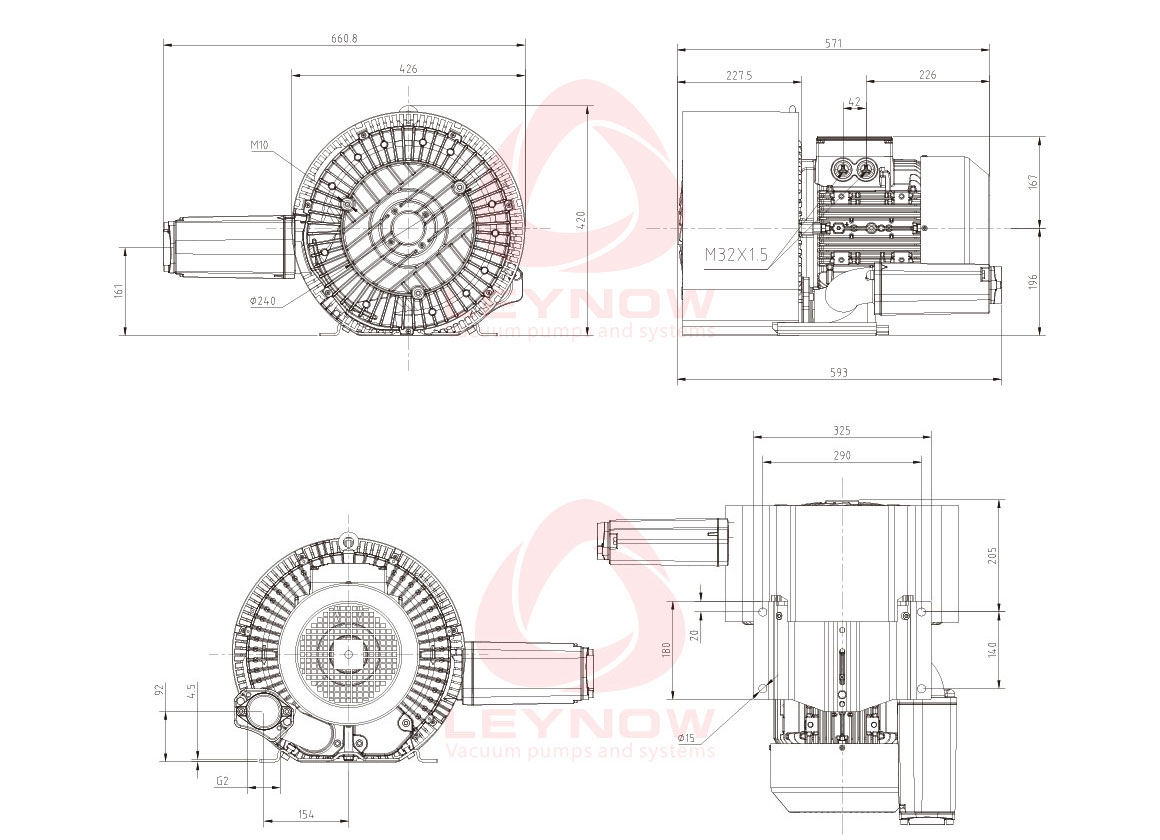 電機功率:4.3 Kw 極限真空:360 mBar 額定電壓:345-415△/600-720Y 額定流量:320 m3/h 額定電流:5.2 A 最大吹力:210 mBar 噪聲等級:73 dB(A) 產品重量:53 Kg