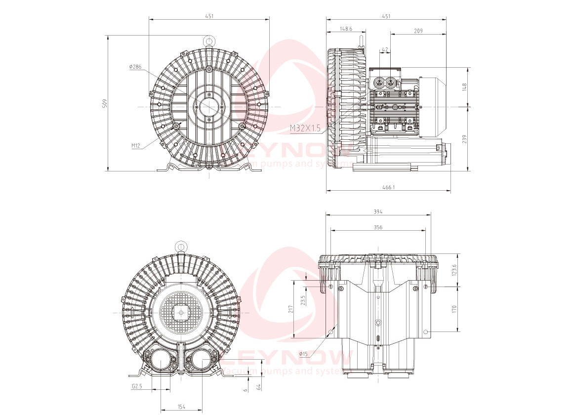 電機功率:5.5 Kw 極限真空:200 mBar 額定電壓:345-415△/600-720Y 額定流量:700 m3/h 額定電流:12.9 A 最大吹力:140 mBar 噪聲等級:70 dB(A) 產品重量:70 Kg