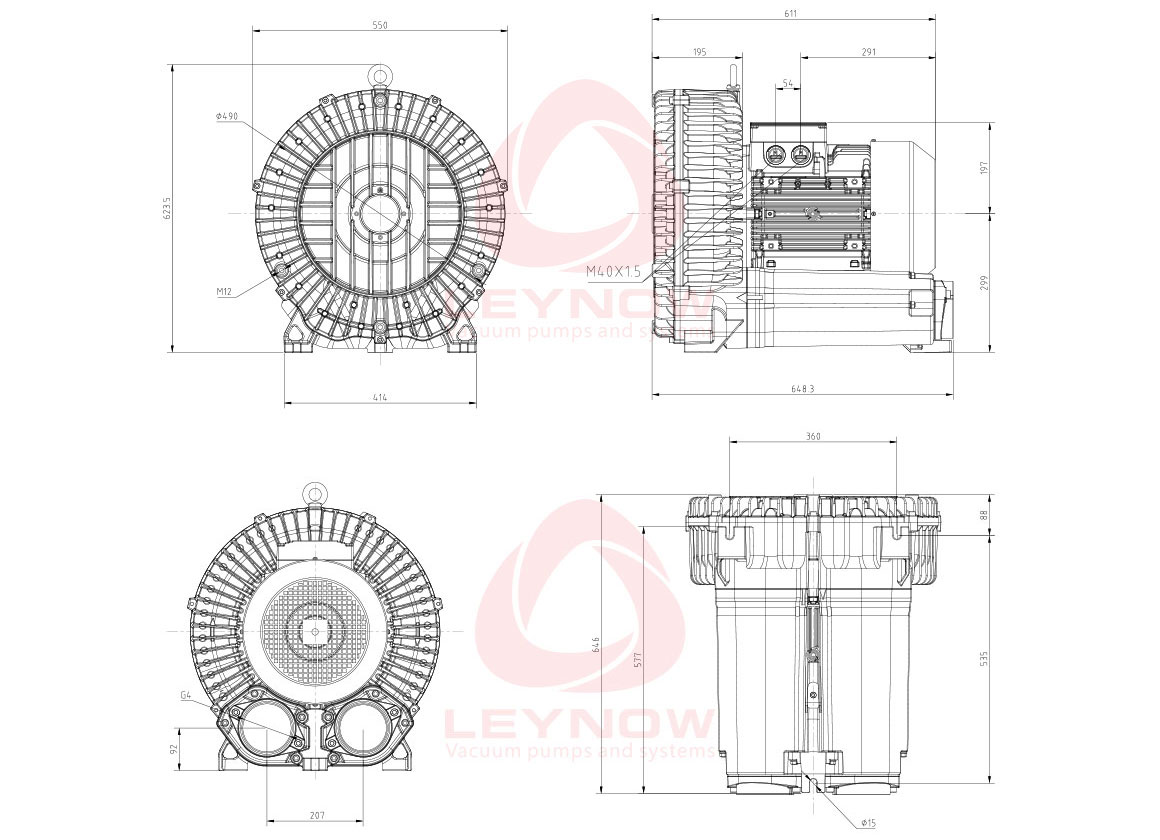 電機功率:0.55 Kw 極限真空:120 mBar 額定電壓:200-240△/345-415Y 額定流量:100 m3/h