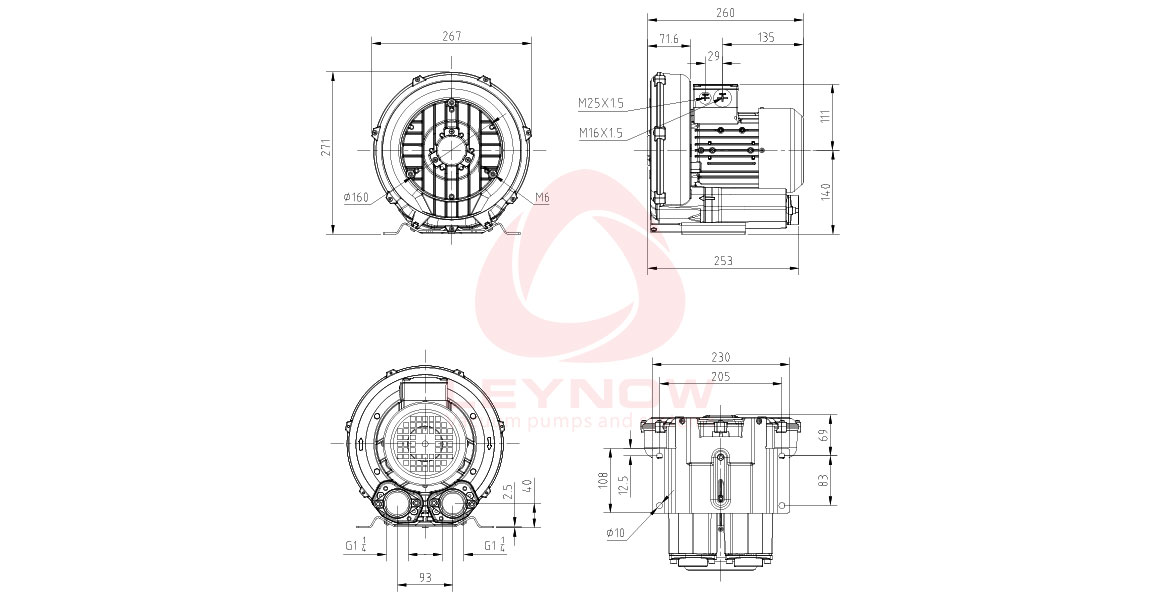 電機功率:2.2 Kw 極限真空:230 mBar 額定電壓:200-240△/345-415Y 額定流量:270 m3/h